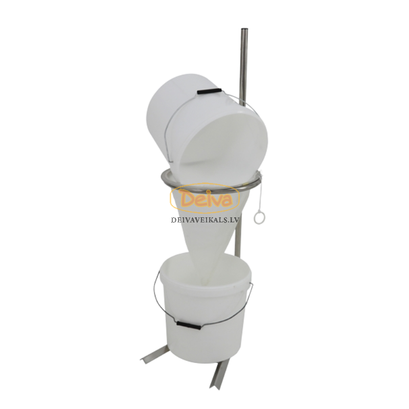 Statīvs ir piemērots visiem Ø32-33 cm koniskajiem sietiem, tādēļ tas ir universāls un ērti izmantojams dažādās saimniecībās. Noņemamais stienis ļauj statīvu viegli izjaukt, un tas uzglabāšanas laikā aizņem maz vietas.